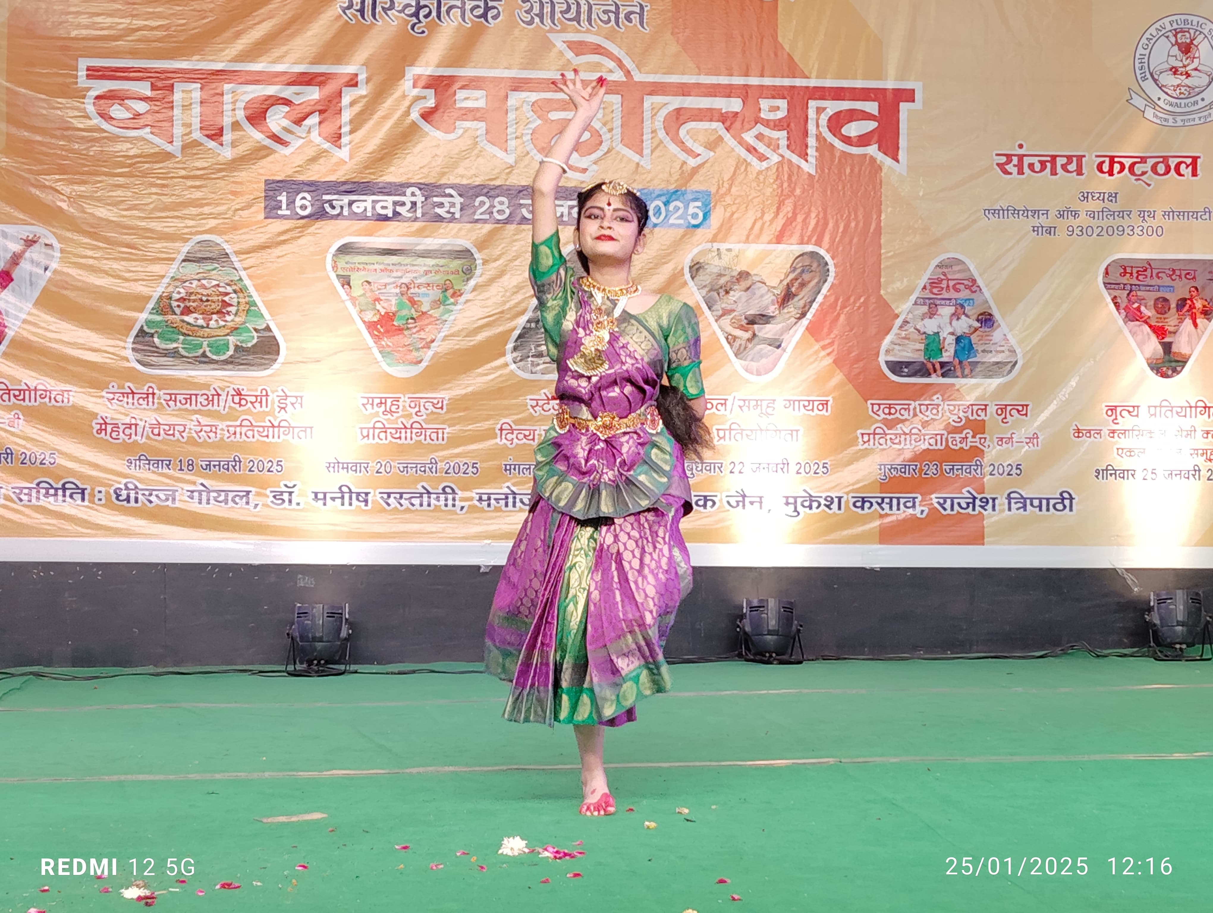 *एकल नृत्य प्रतियोगिता वर्ग ए क्लासिकल में प्रथम पुरस्कार अवनी उपाध्याय द्वितीय पुरस्कार अरविका शर्मा तृतीय पुरस्कार से हेमान्य राजे करकरे एकल नृत्य वर्ग बी क्लासिकल प्रथम पुरस्कार तनिष्का यादव द्वितीय पुरस्कार शिवी निम तृतीय पुरस्कार गौरांसी सिंह विजेता रहे*
