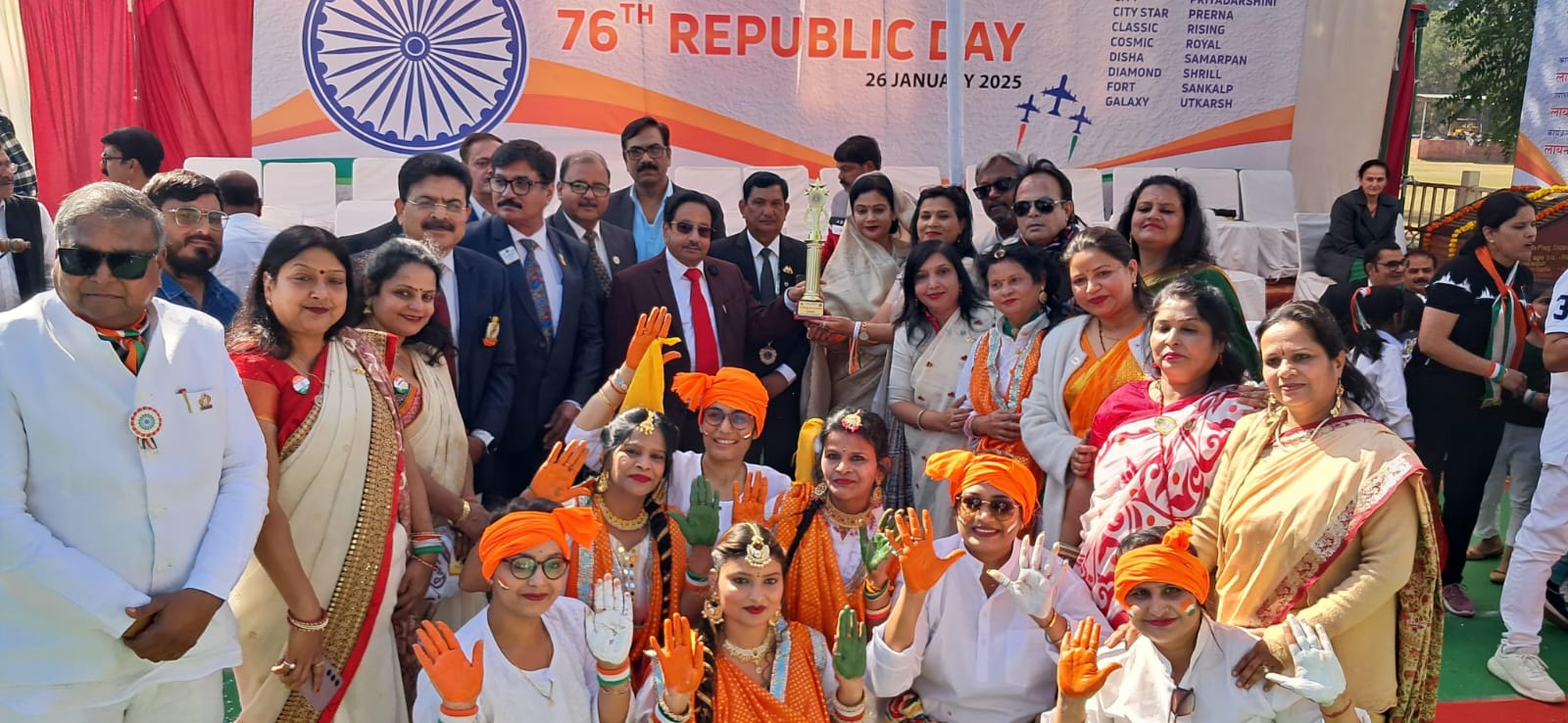 लायंस क्लब सिटी की मेजबानी में गणतंत्र समारोह सामूहिक रूप से फ्लैग पॉइंट पर मनाया गया जिसमें लायंस क्लब आस्था द्वारा सेवा गतिविधि के साथ सांस्कृतिक प्रस्तुति भी क्लब के सदस्यों संगीता जौहरी,मोहिता गोयल, संगीता गोयल,प्रियंका अग्रवाल, चंचल सिंह, कविता खंडेलवाल, रिचा गुप्ता, ज्योति कुशवाह द्वारा ये देश हैँ वीर जवानों का गाने पर दी गयी जिसमें लायंस क्लब आस्था ने प्रथम स्थान प्राप्त किया और मुख्य अतिथि नगर निगम के पूर्व संभागीय आयुक्त बी एम शर्मा, एवं विशिष्ट अतिथि प्रथम उपप्रांतपाल सुधीर बाजपेई एवं पूर्व महापौर समीक्षा गुप्ता द्वारा क्लब को शील्ड द्वारा सम्मानित किया गया।