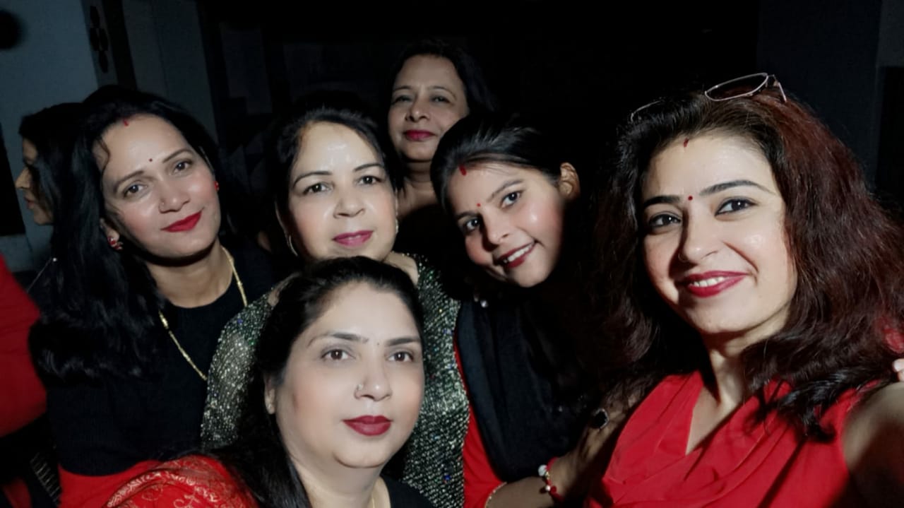 वंडरफुल किटी ग्रुप द्वारा वेलेंटाइन डे थीम पर रेड एंड ब्लैक ड्रेस में की अपनी किटी पार्टी